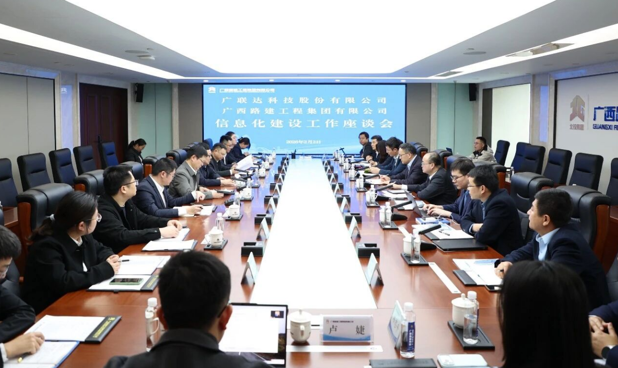 广联达董事长、总裁袁正刚率队到访广西路建工程集团有限公司,双方在北投大厦召开信息化建设工作座谈会